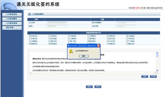 1、签约成功后,可进入该菜单项下查询是否签约成功。签约是需要海关审批的。